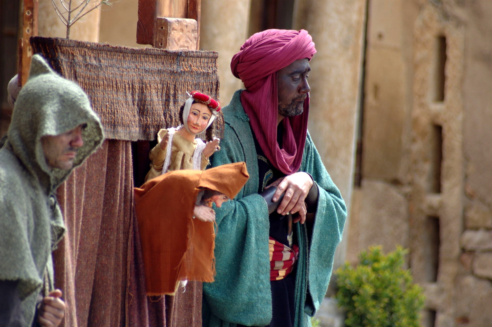 - Recreació històrica autèntica: La posada en escena s’inspira en cròniques medievals, com el «*Llibre de *contemplació de *Déu» de Ramon Llull, que esmenten el teatre de titelles en l’Edat mitjana. L’escenografia, vestuari i caracterització busquen referències en les pintures de Pieter Bruegel, oferint una ambientació fidel a l’època.